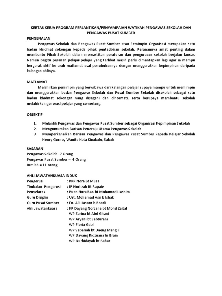 Kertas Kerja Program Perlantikan Pengawas Pdf